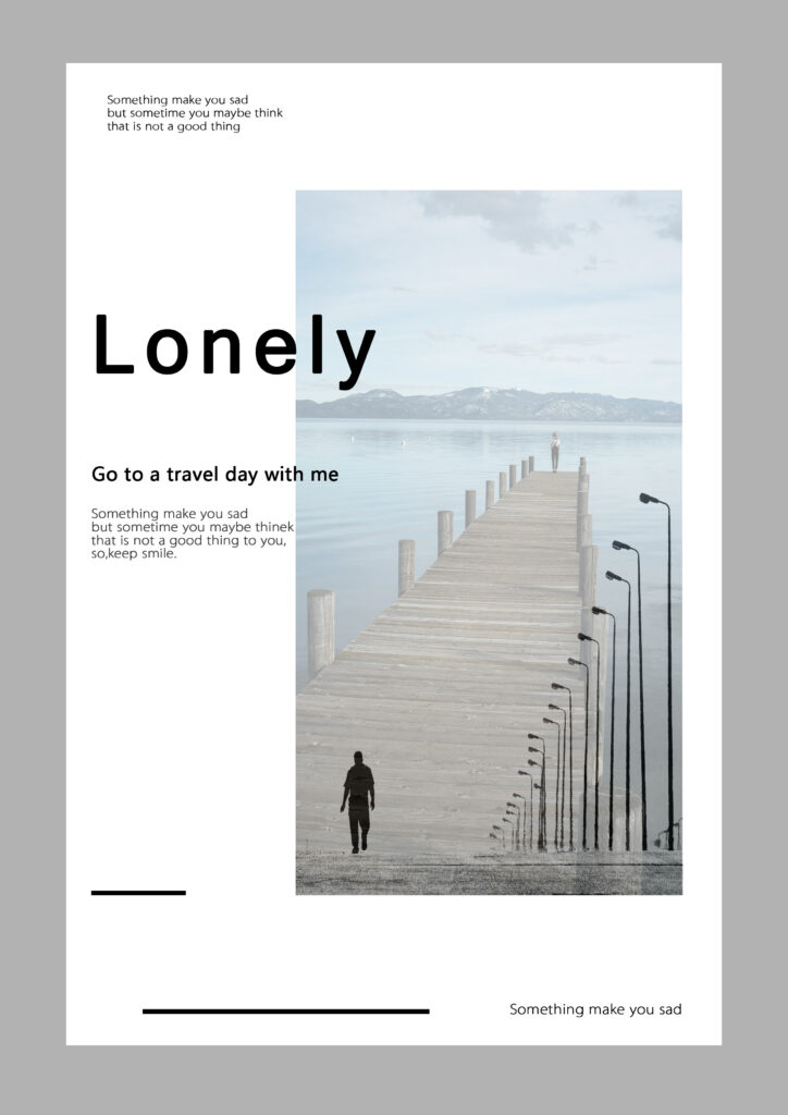 This poster uses the image of a person walking on a pier and simple text to express the emotion of loneliness while encouraging people to stay positive.