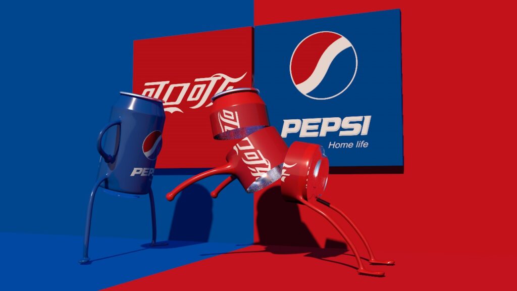 Centered around Pepsi, this C4D modeling work features dynamic interaction between Pepsi cans. With the brand’s signature red and blue as the main colors, and through anthropomorphic design of the cans, it adds a sense of fun and vitality. The background brand logos further strengthen brand recognition, making the work both visually appealing and effective in brand communication.
